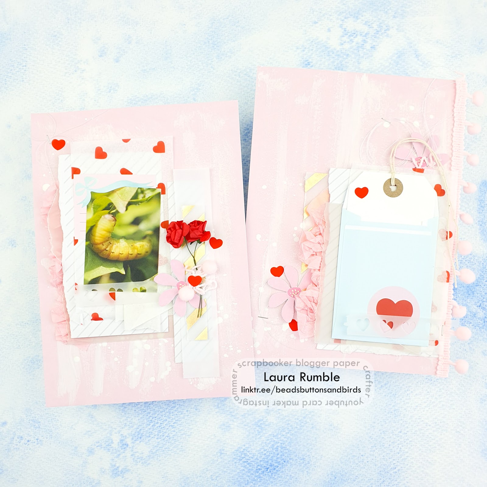 I've gone for a scraptherapy style 6x8 spread featuring a caterpillar and lots of (shock horror) pink!